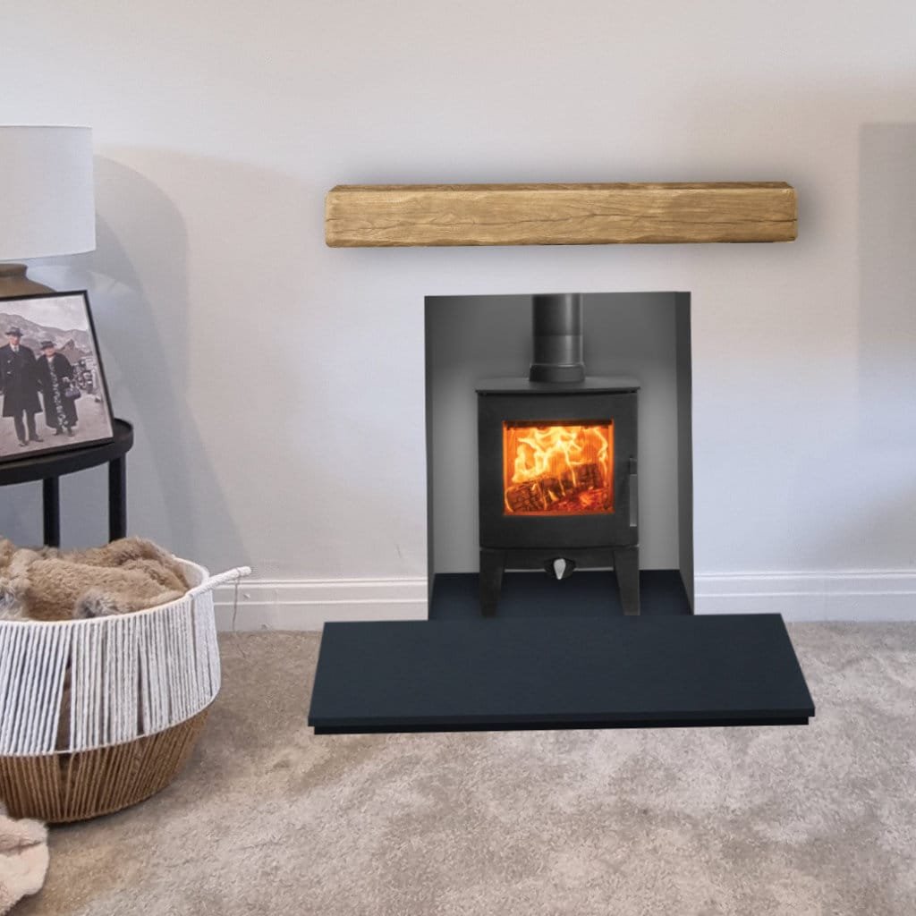 Stovax Futura 4 is a small wood burning stove and multi-fuel stove that makes for the perfect centrepiece in cosier family rooms, snugs, home offices and houseboats. Its curved door and large viewing window combine with an advanced Airwash system to ensure this little log burner provides a crisp flame visual all winter long! (£1419)