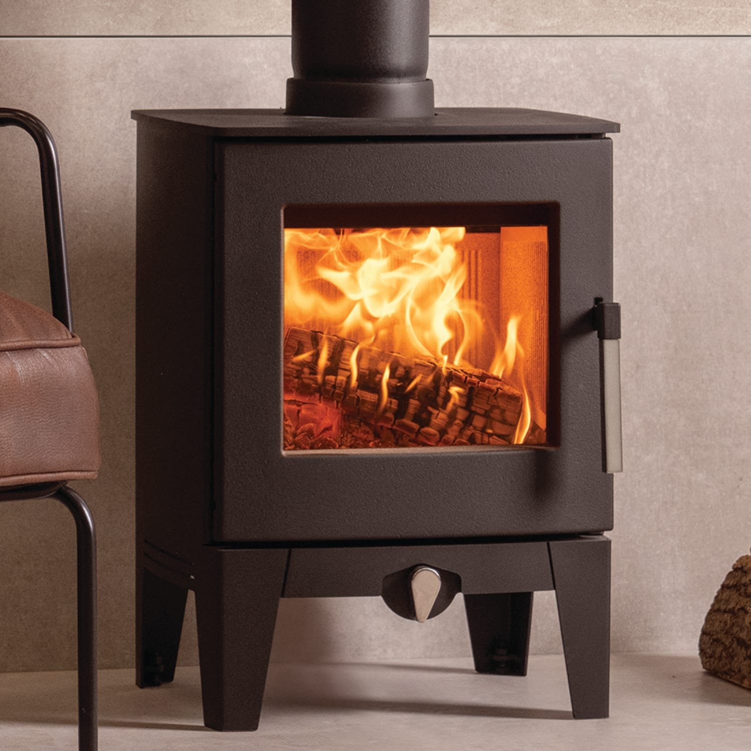 Pairing contemporary style with a steady heat output of 4kW, the Stovax Futura 4 is a small wood burning stove and multi-fuel stove that makes for the perfect centrepiece in cosier family rooms, snugs, home offices and houseboats. Futura 4 stoves feature state-of-the-art Cleanburn jets, maximising performance while minimising emissions. This, among other modern elements, allow these sprightly stoves to drastically exceed DEFRA Smoke Control and Ecodesign standards, meaning you can have one anywhere in the country.