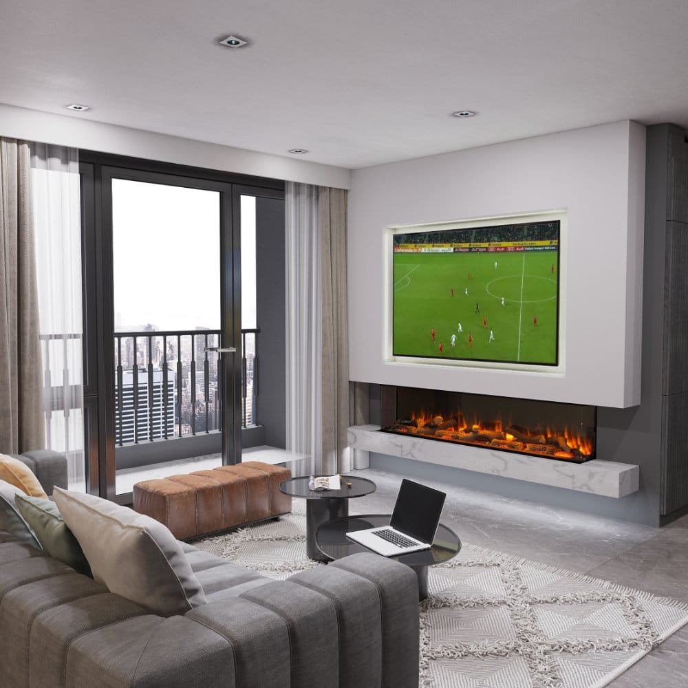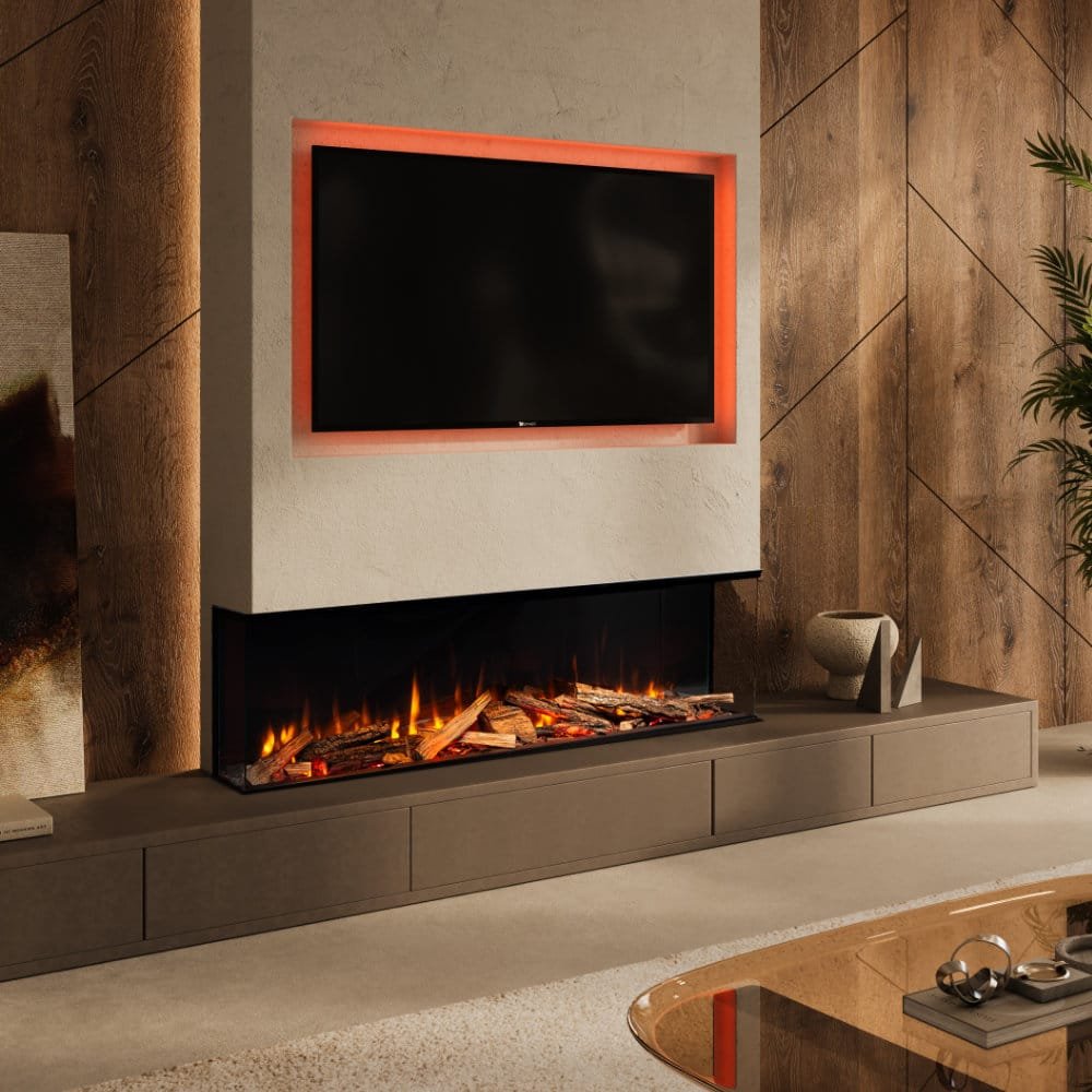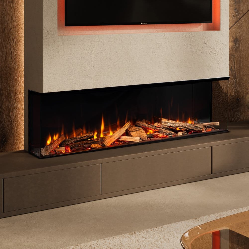 The i1500e Deep is a deeper version of the iRange ideal to go into feature walls and room dividers. The extra depth has allowed for a new chunkier log set and increased illumination of the fuel bed thanks to a new glowing front log feature. This fire can be fitted in one, two, or three-sided configurations, and when you add the optional LED mood lighting, the potential customisation options are endless.